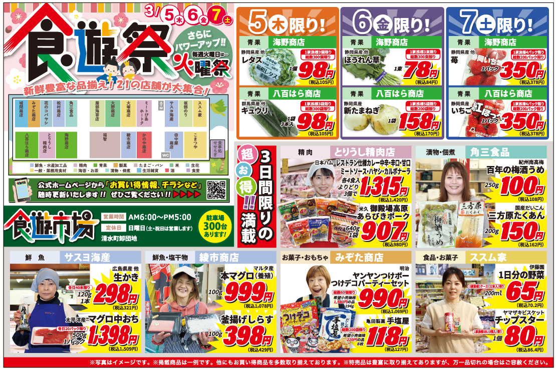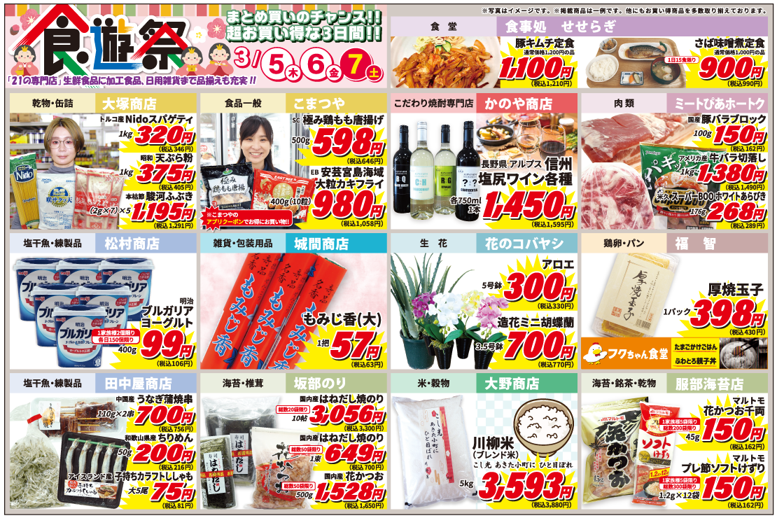 HOME | チラシ情報 お得なニュースをいち早くお届け。 下の画像をクリックすると拡大表示されます。 火曜祭チラシの内容 チラシの保存用データはこちらから! 下の画像をクリックすると拡大表示されます。 チラシ表面の保存用データはこちらから! 下の画像をクリックすると拡大表示されます。 チラシ裏面の保存用データはこちらから! 下の画像をクリックすると拡大表示されます。 火曜祭チラシの内容 チラシの保存用データはこちらから!