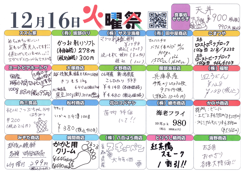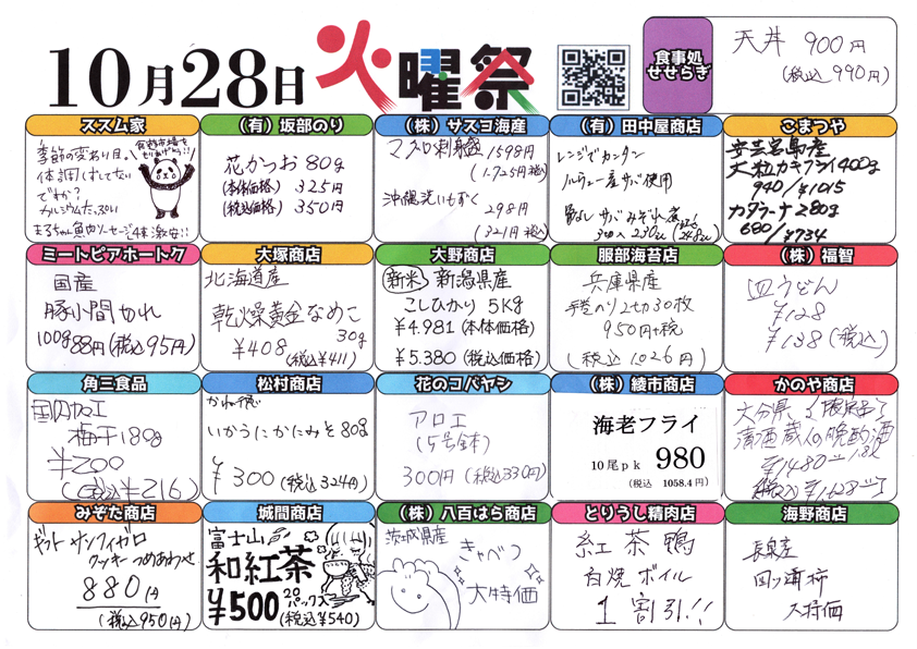 HOME | チラシ情報 お得なニュースをいち早くお届け。 下の画像をクリックすると拡大表示されます。 火曜祭チラシの内容 チラシの保存用データはこちらから! 下の画像をクリックすると拡大表示されます。 チラシ表面の保存用データはこちらから! 下の画像をクリックすると拡大表示されます。 チラシ裏面の保存用データはこちらから! 下の画像をクリックすると拡大表示されます。 火曜祭チラシの内容 チラシの保存用データはこちらから!